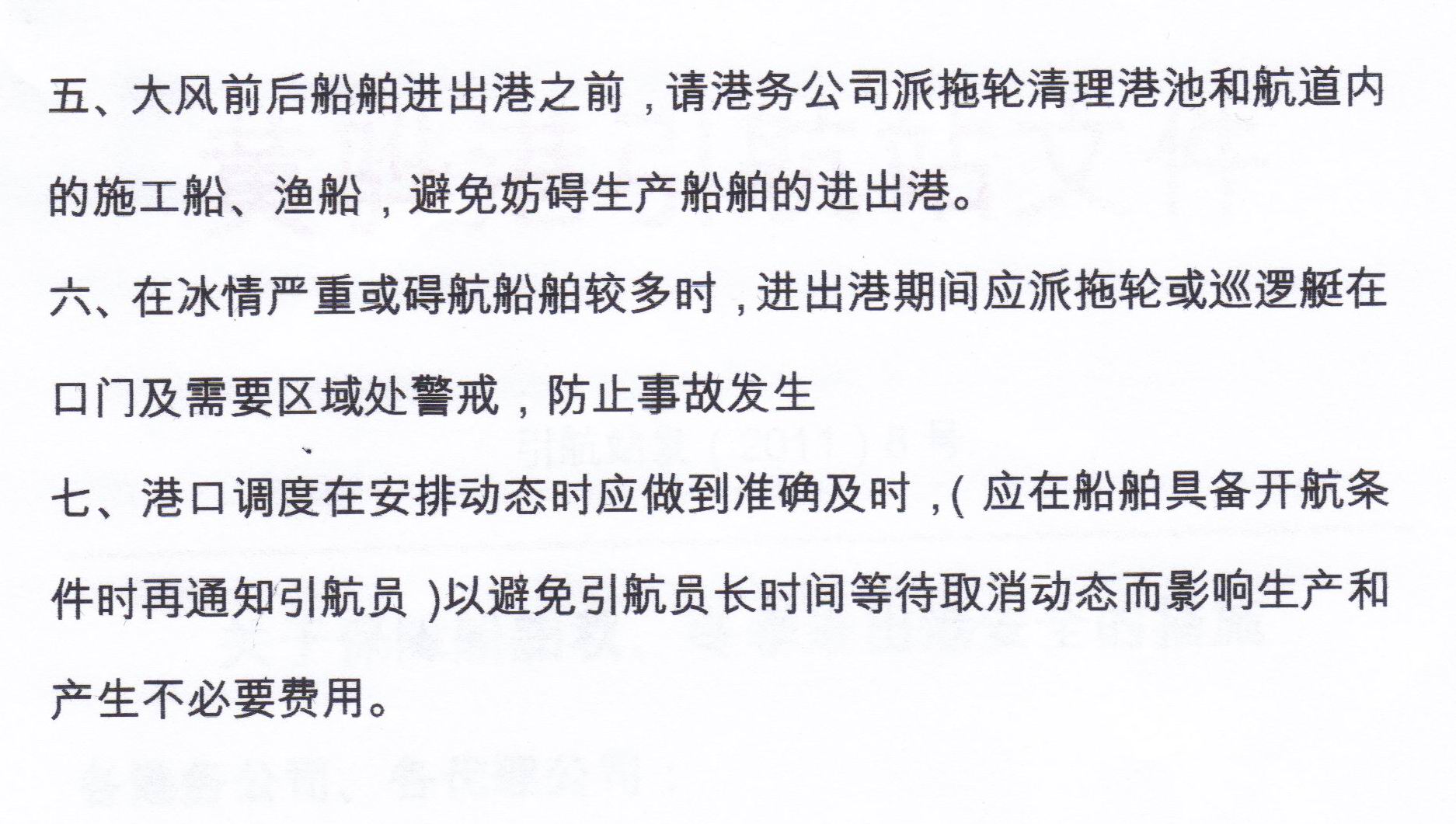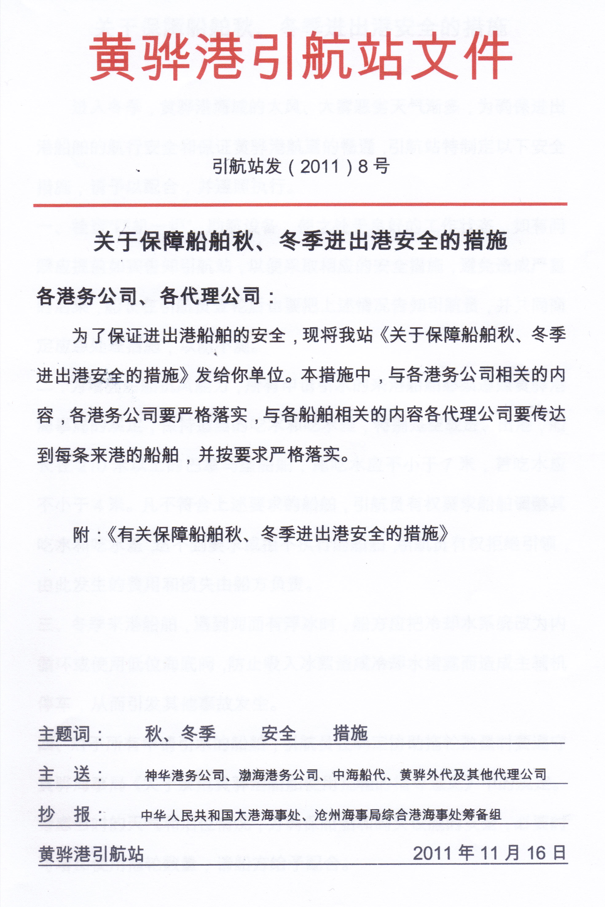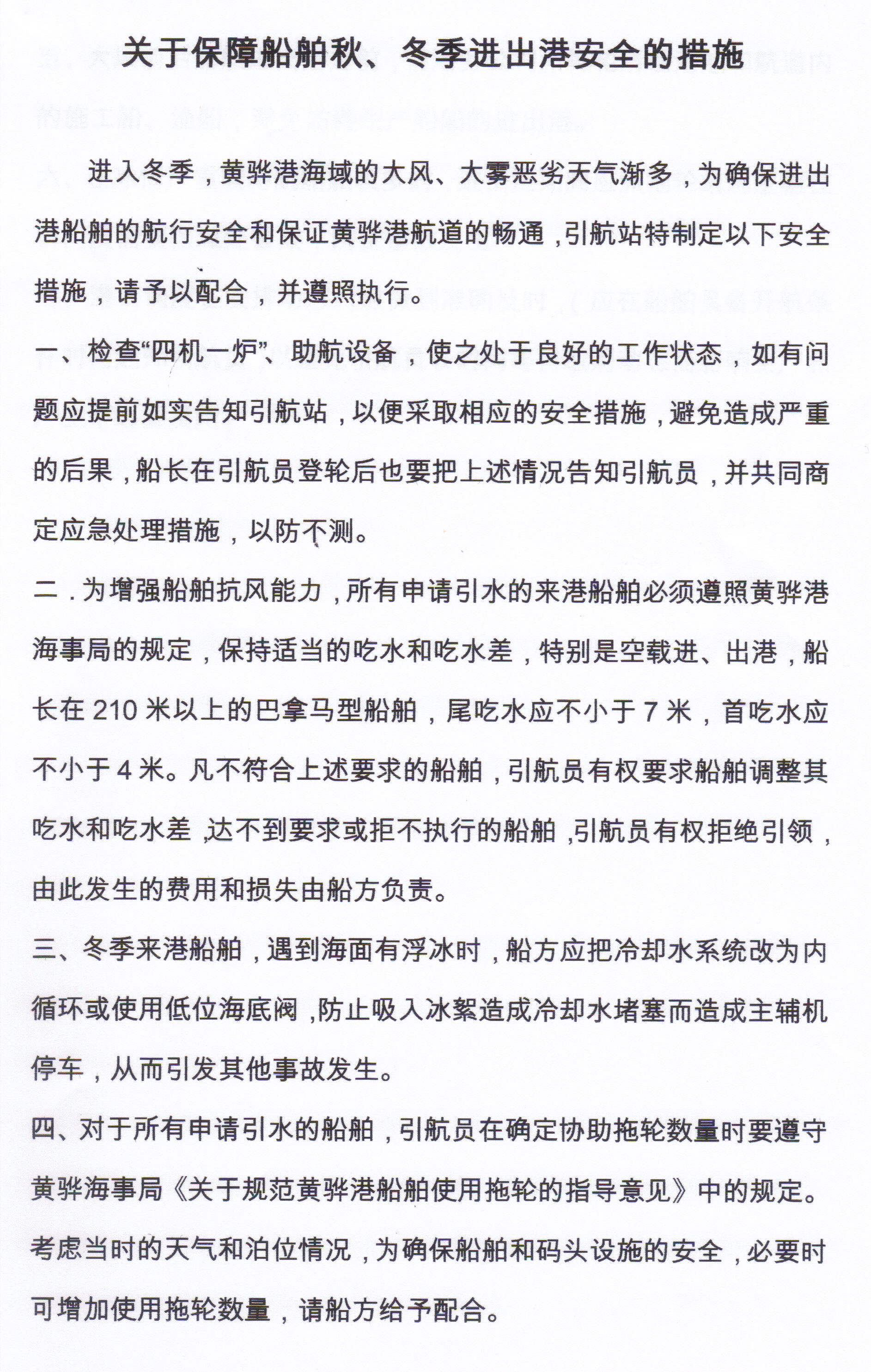 关于保障船舶秋、冬季进出港安全的措施