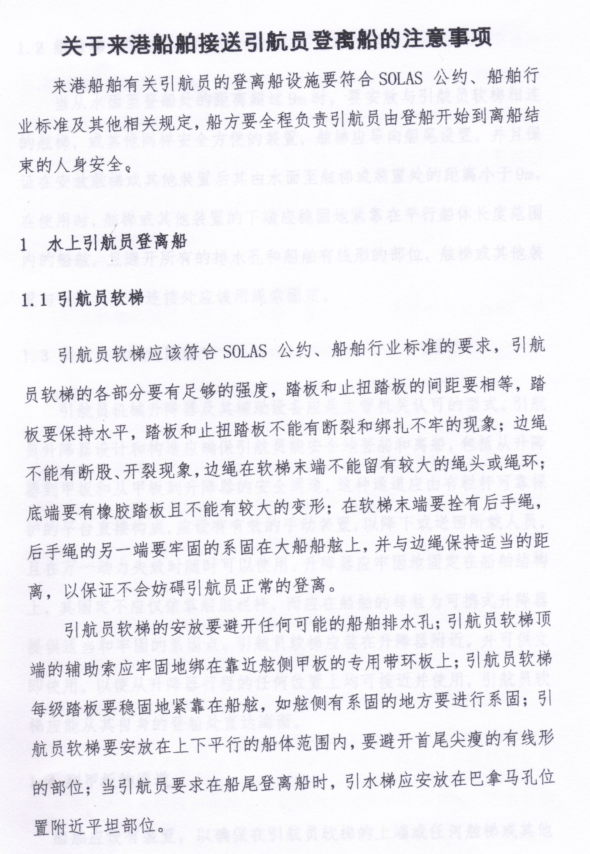 关于来港船舶接送引航员登离船的注意事项