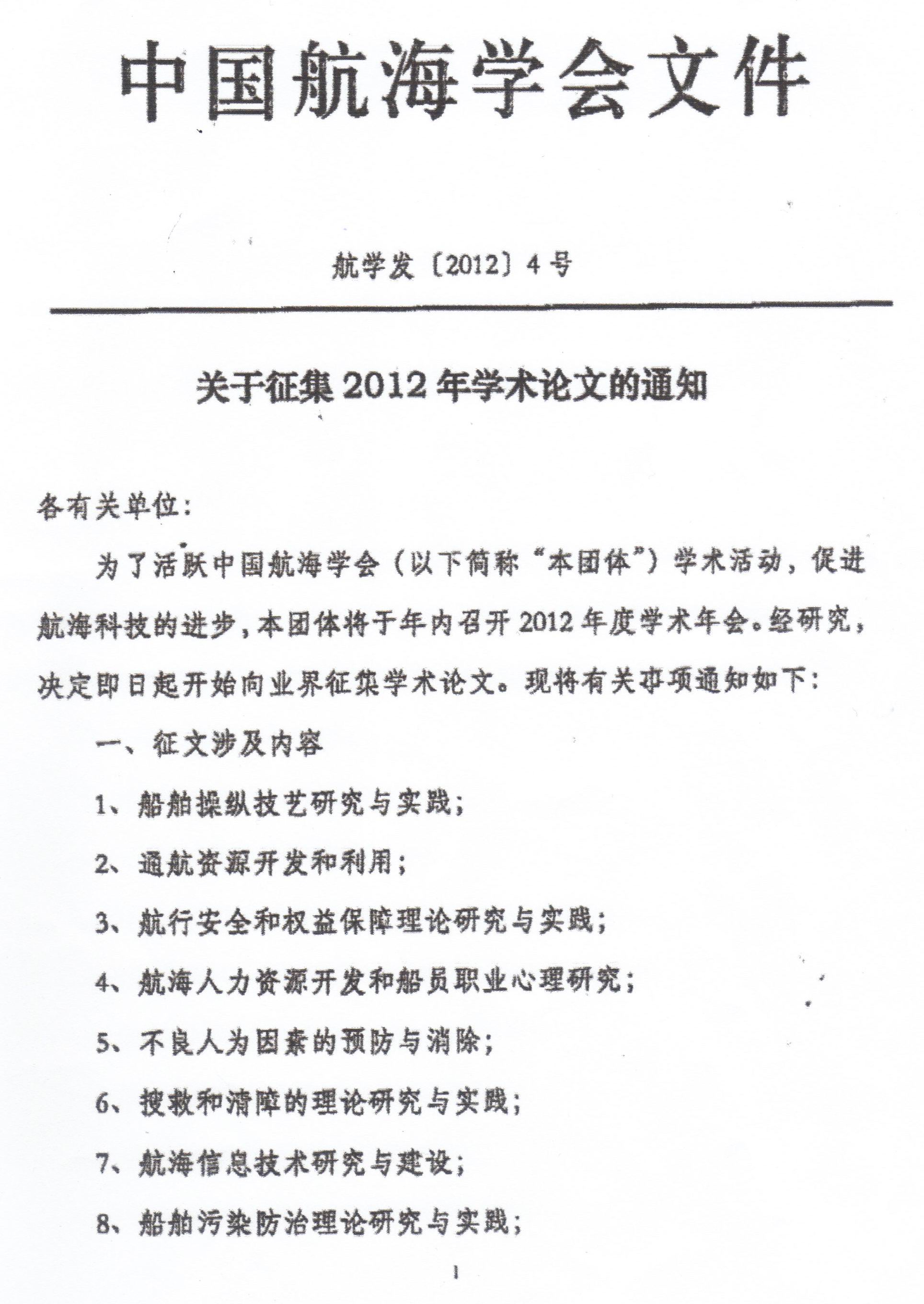 关于征集2012年学术论文的通知