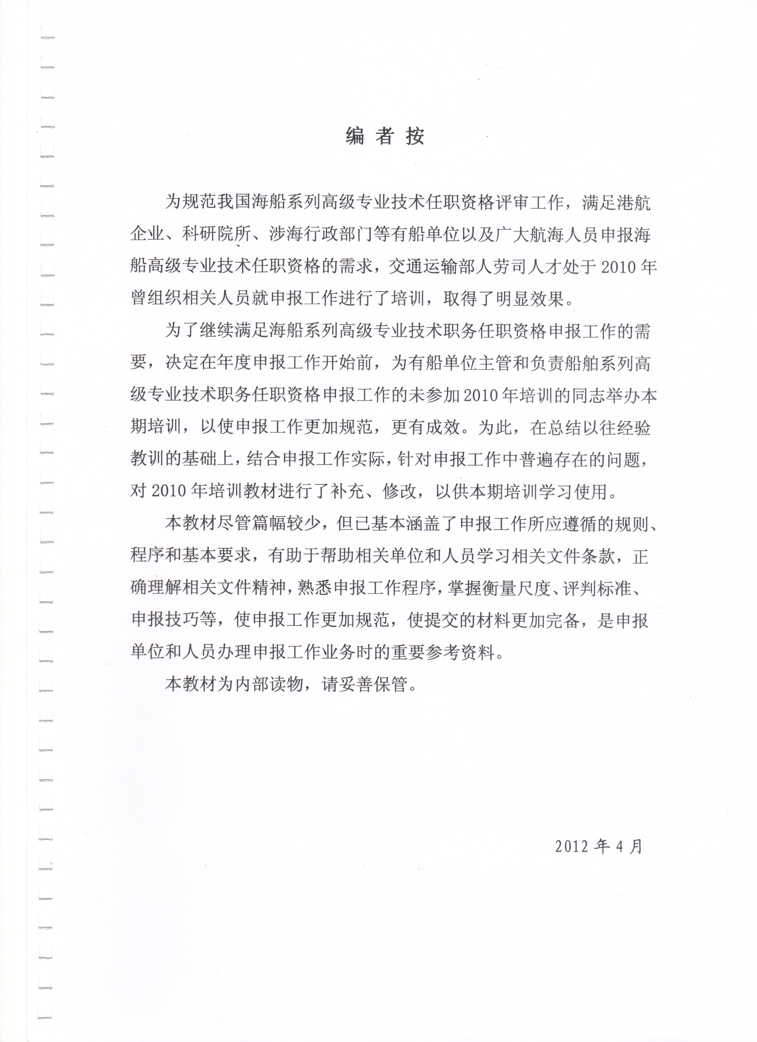 海船高级专业技术资格标准条件培训教材