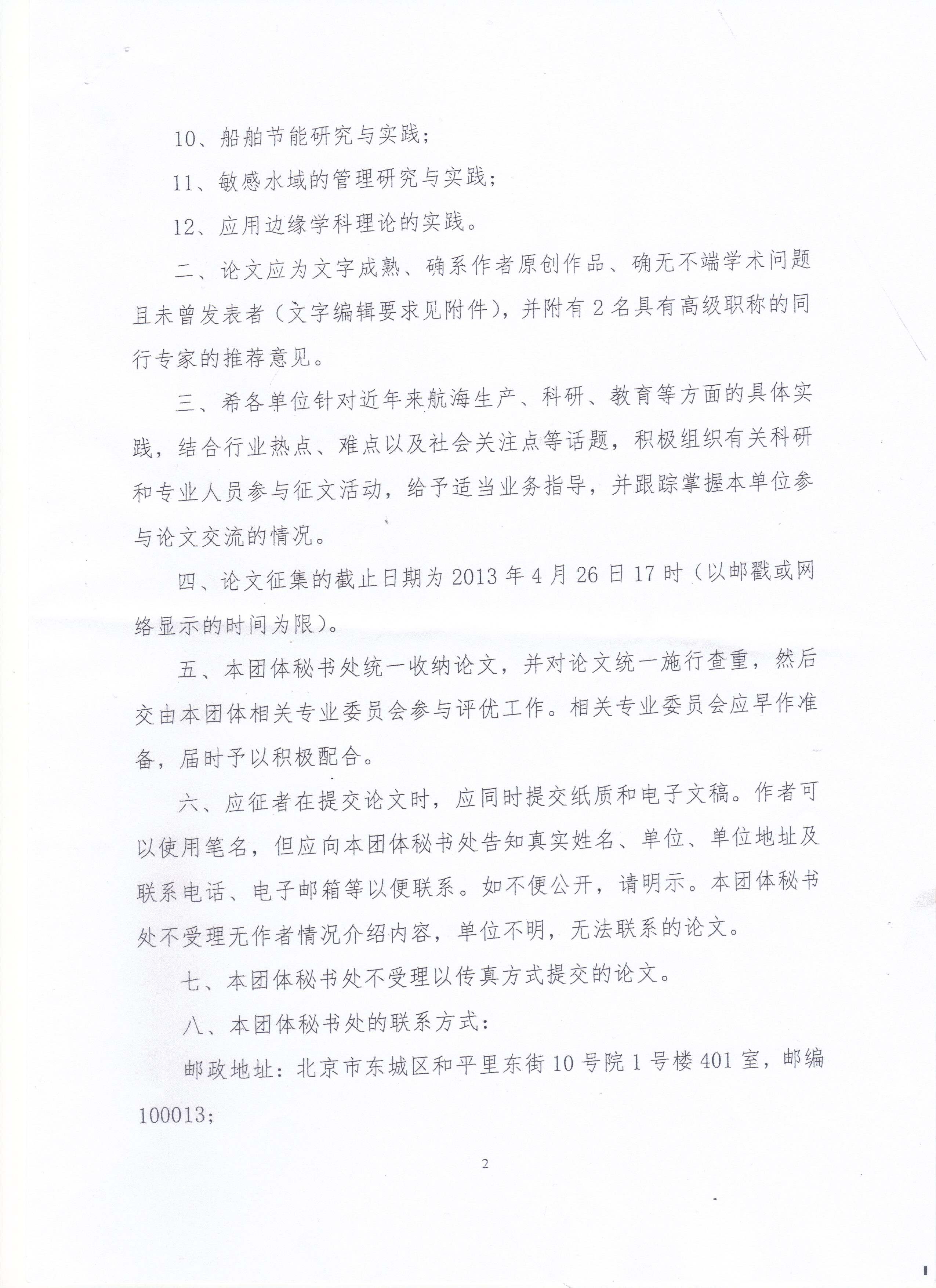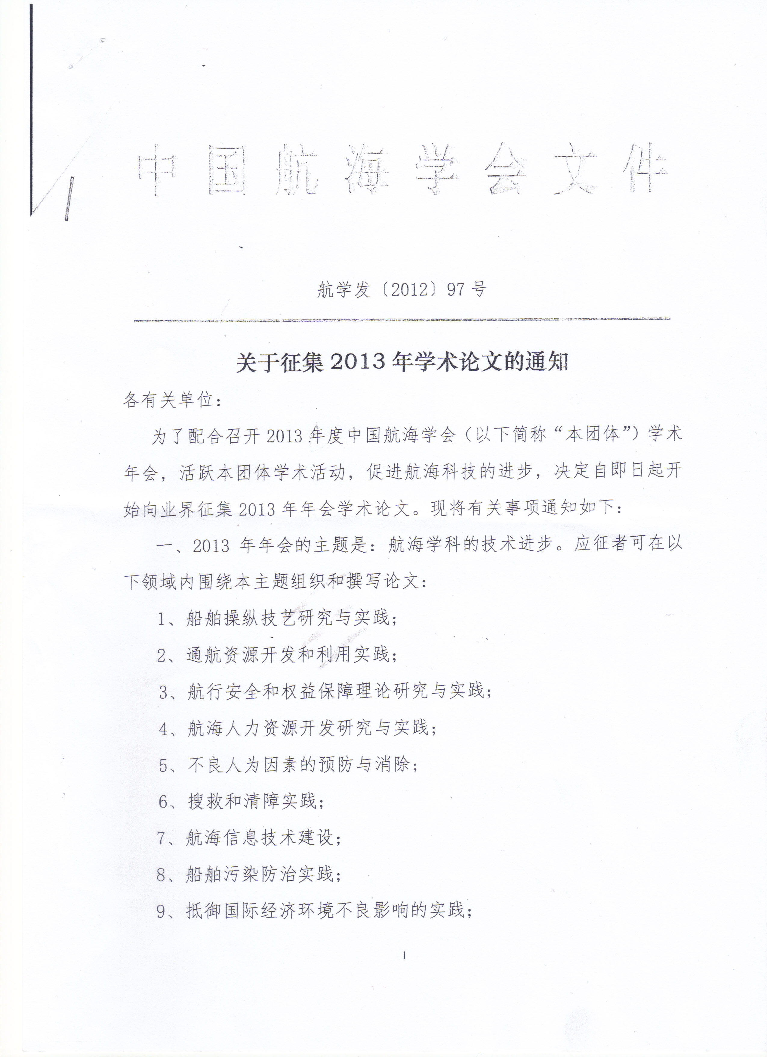 中国航海学会征集2013年学术论文的通知