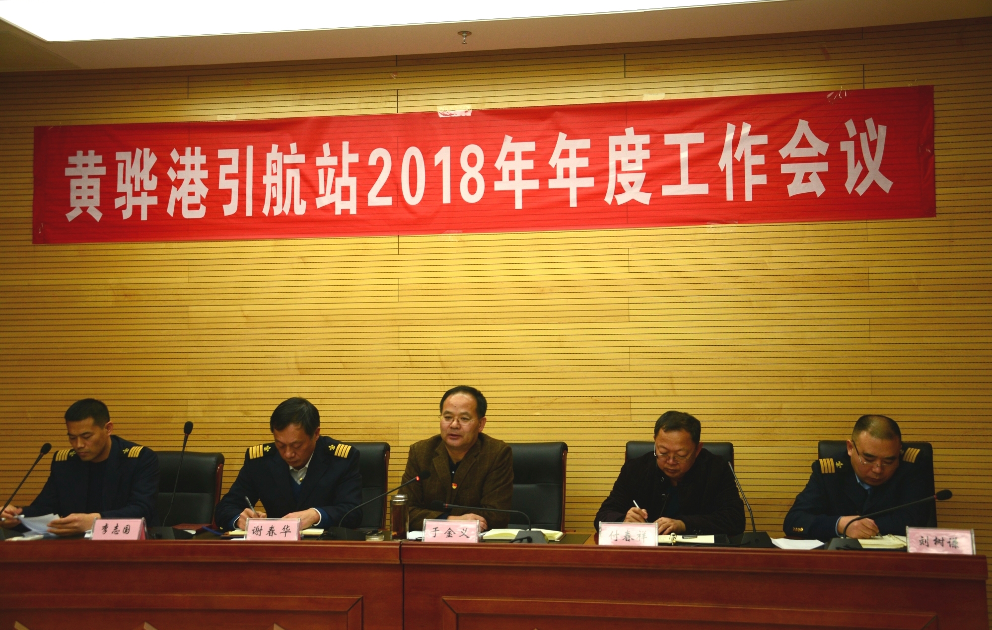 2018 年2月8日,黄骅港引航站召开了2018年年度工作会议,会议由副站长刘树谦同志主持,港航局局长于金义同志、办公室主任付春祥同志出席会议,站领导、职工共计42人参加会议。