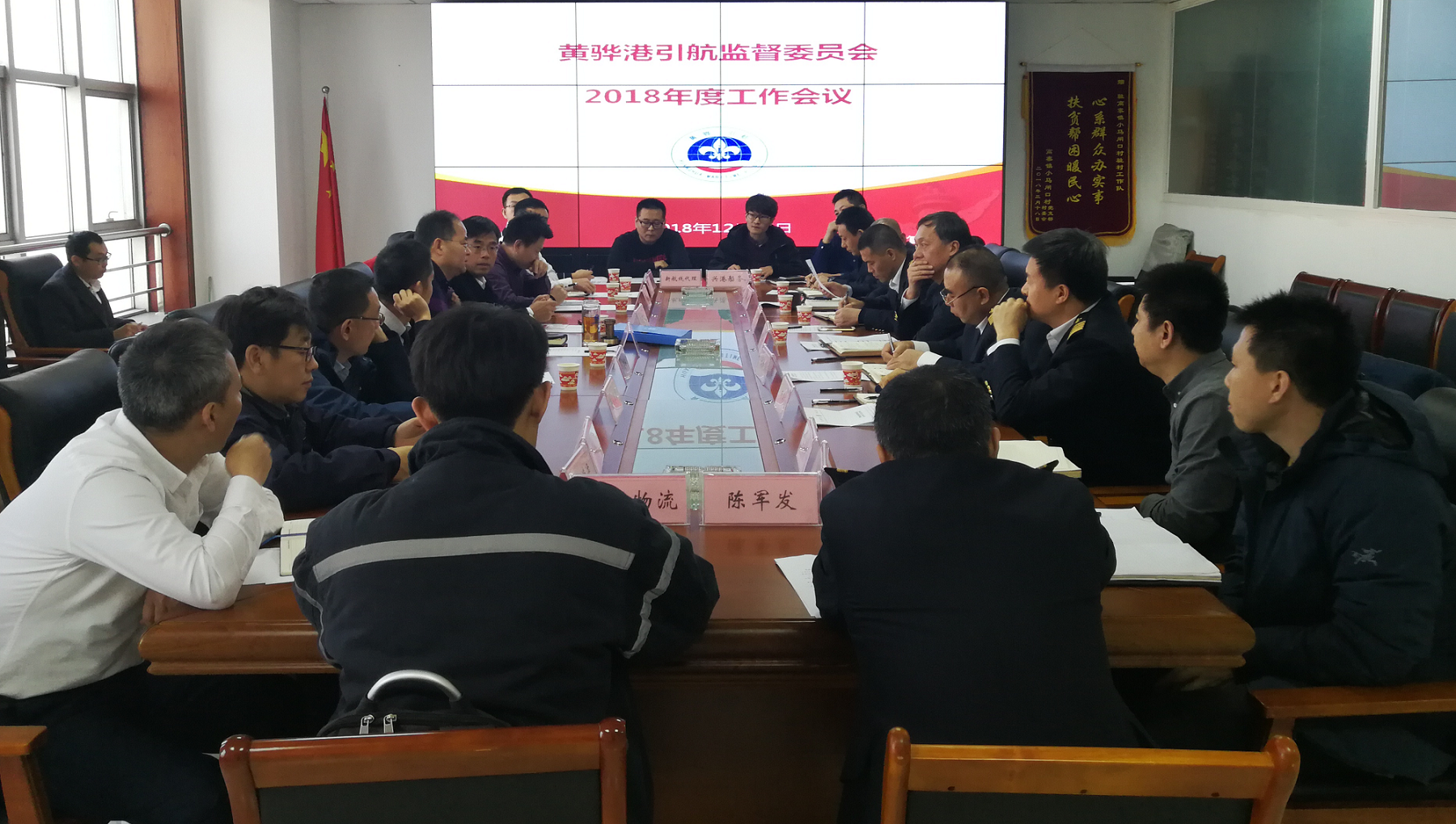 2018年12月25日下午黄骅港引航监督委员会2018年度工作会议在沧州渤海新区航运中心大厦11楼会议室召开。黄骅港引航监督委员会主任、沧州市港航管理局局长于金义,黄骅港引航监督委员会副主任、沧州海事局副局长石莉坡,黄骅港引航监督委员会委员、港方、代理企业相关负责人,黄骅港引航站中层以上干部共20余人参加了本次会议。