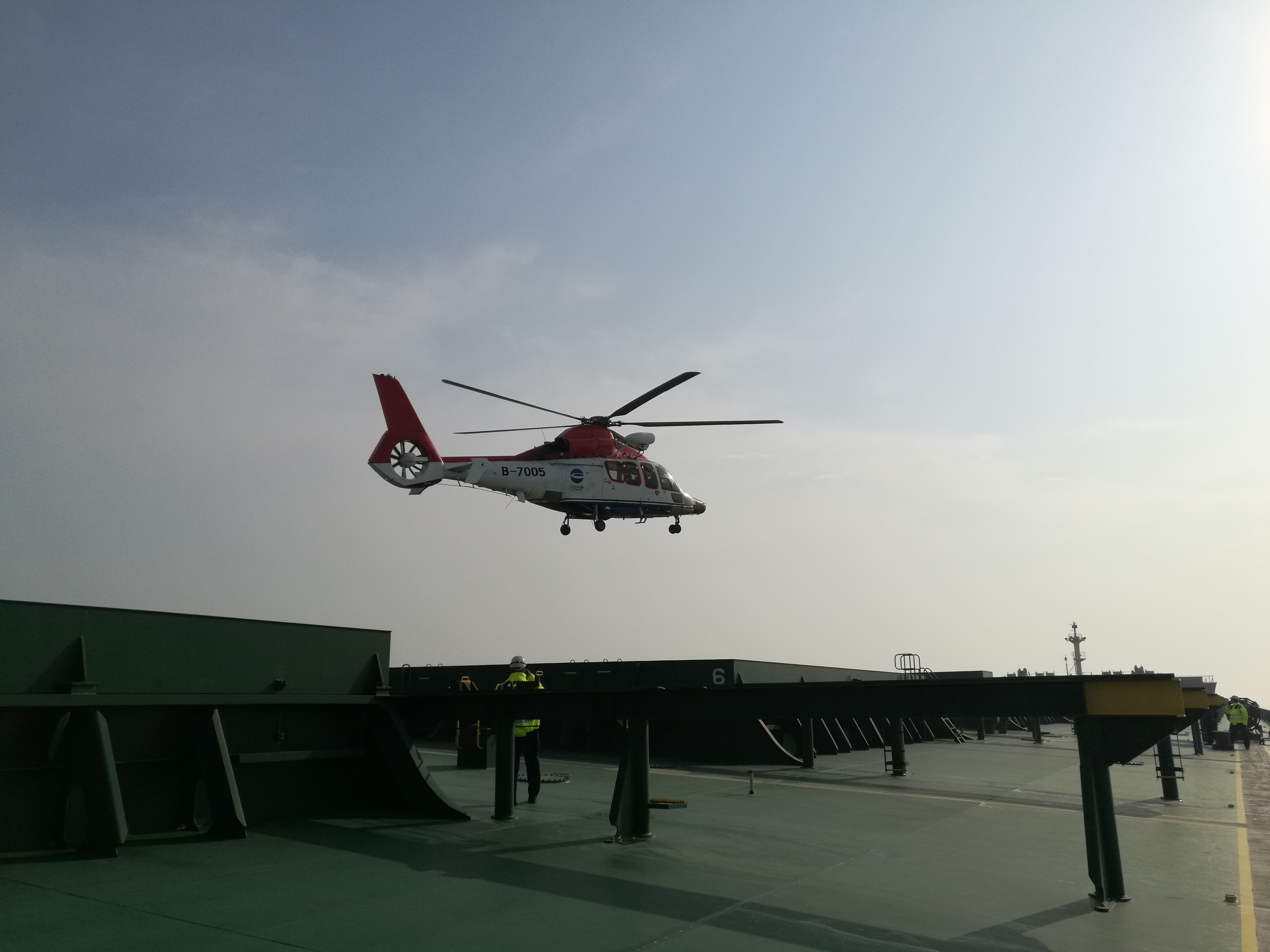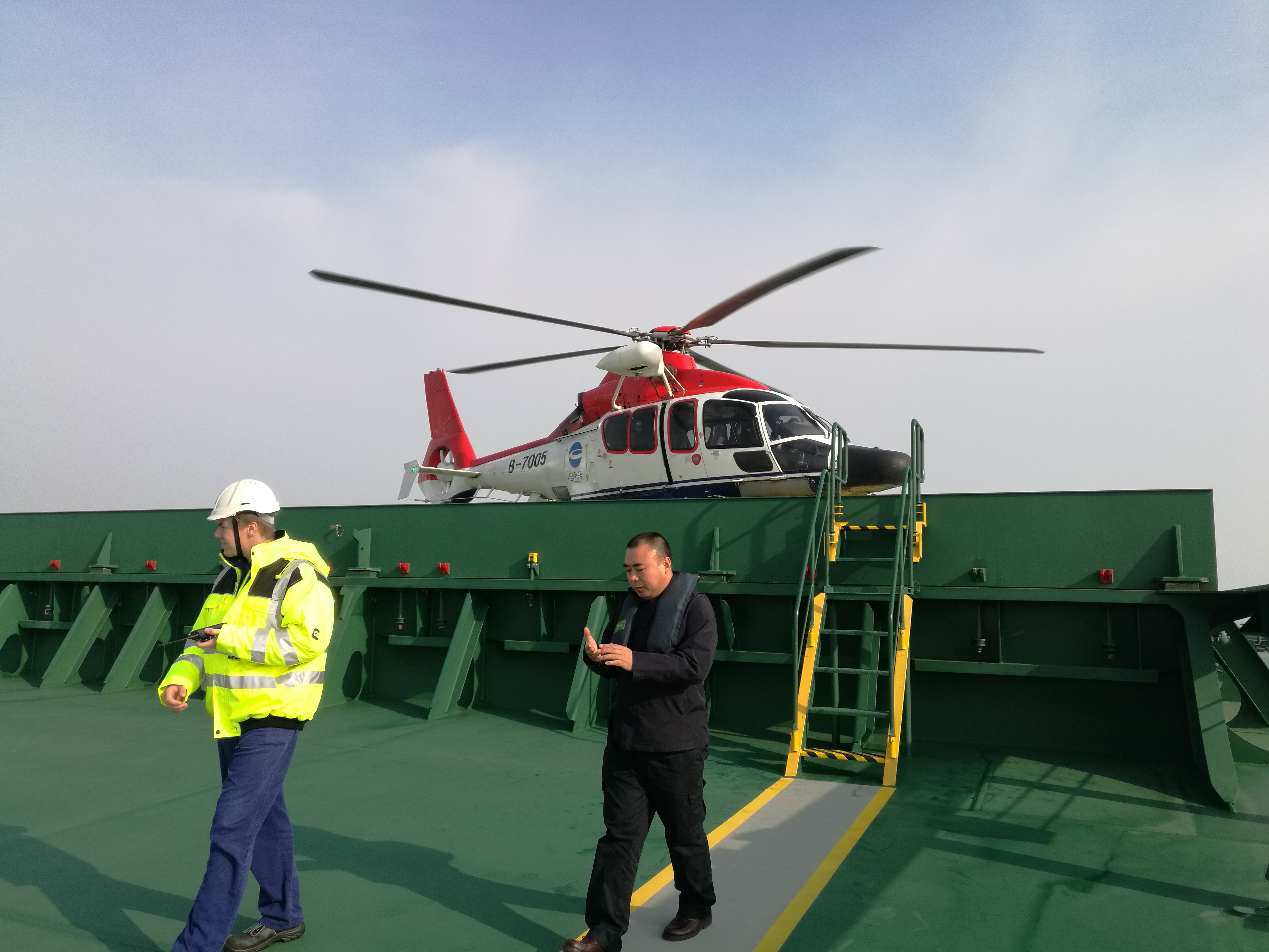 引航员乘坐直升机登船