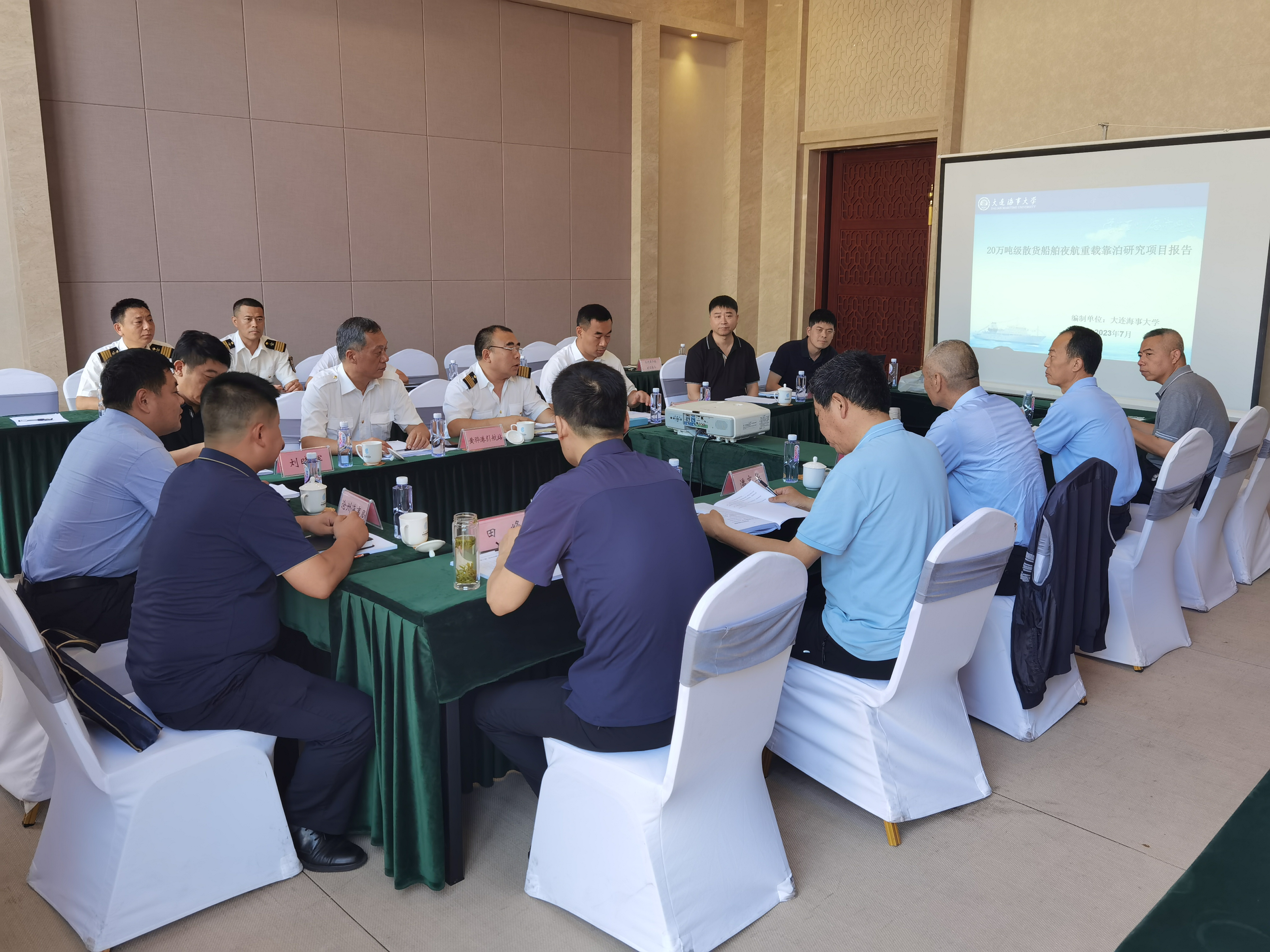 会议听取了大连海事大学项目组关于此次项目评估的汇报,各单位专家和与会人员就各自职业范围对相关成果提出了优化意见和建议,会议建议进一步分析引航员配备要求,根据专家和代表意见完善《20万吨级散货船舶夜航重载靠泊研究项目报告》并补充减载离泊模拟实验。