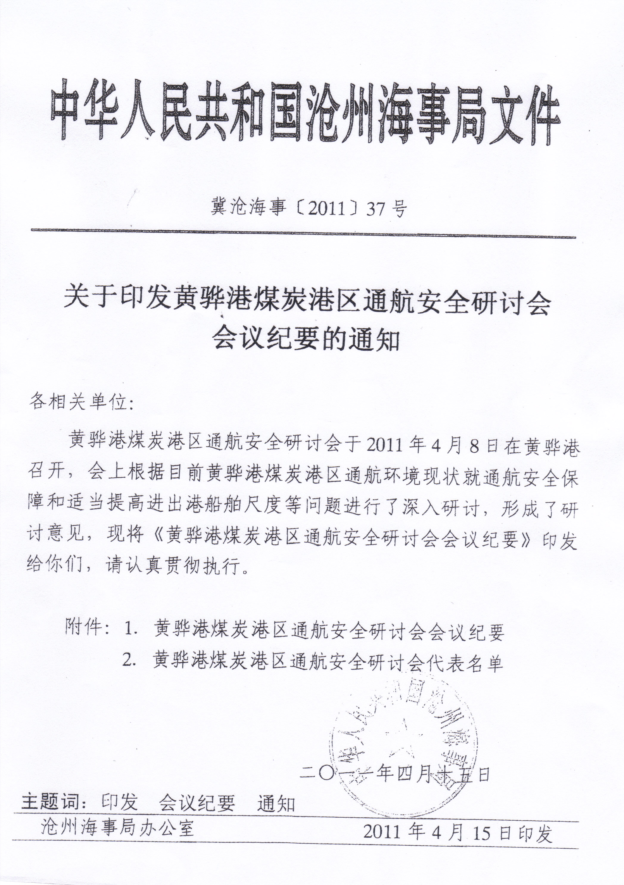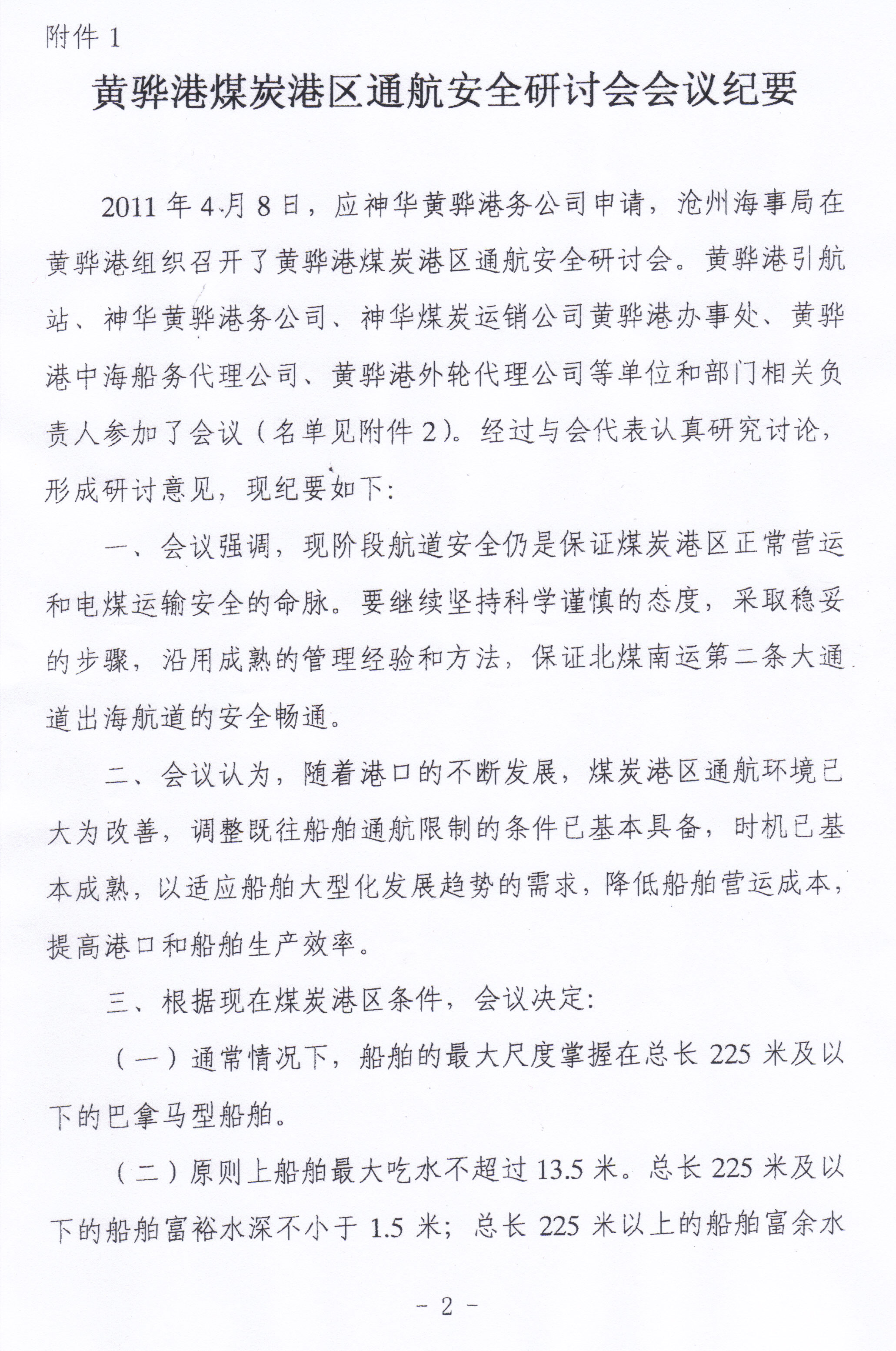 黄骅港煤炭港区通航安全会议纪要