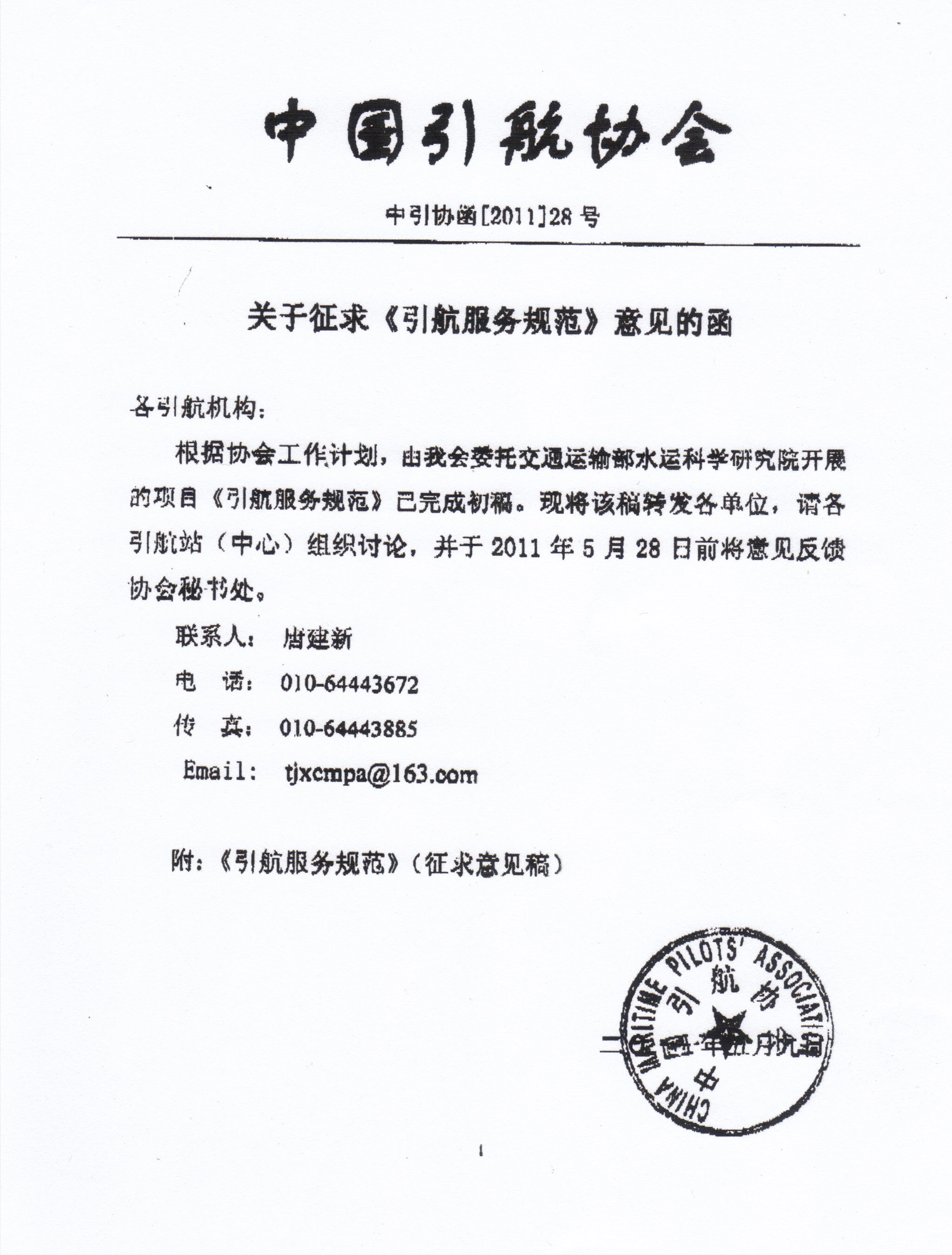 各引航员请将意见于5月23日前反馈到办公室